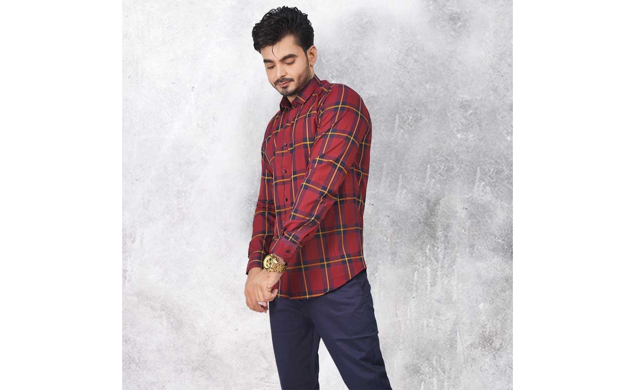 Maroon and Yellow Stripes Box Check Italian Series Men’s Casual Shirt CS 04