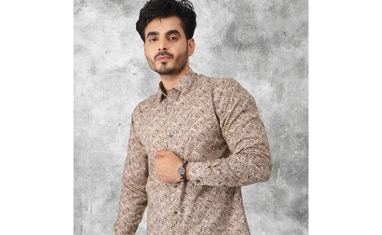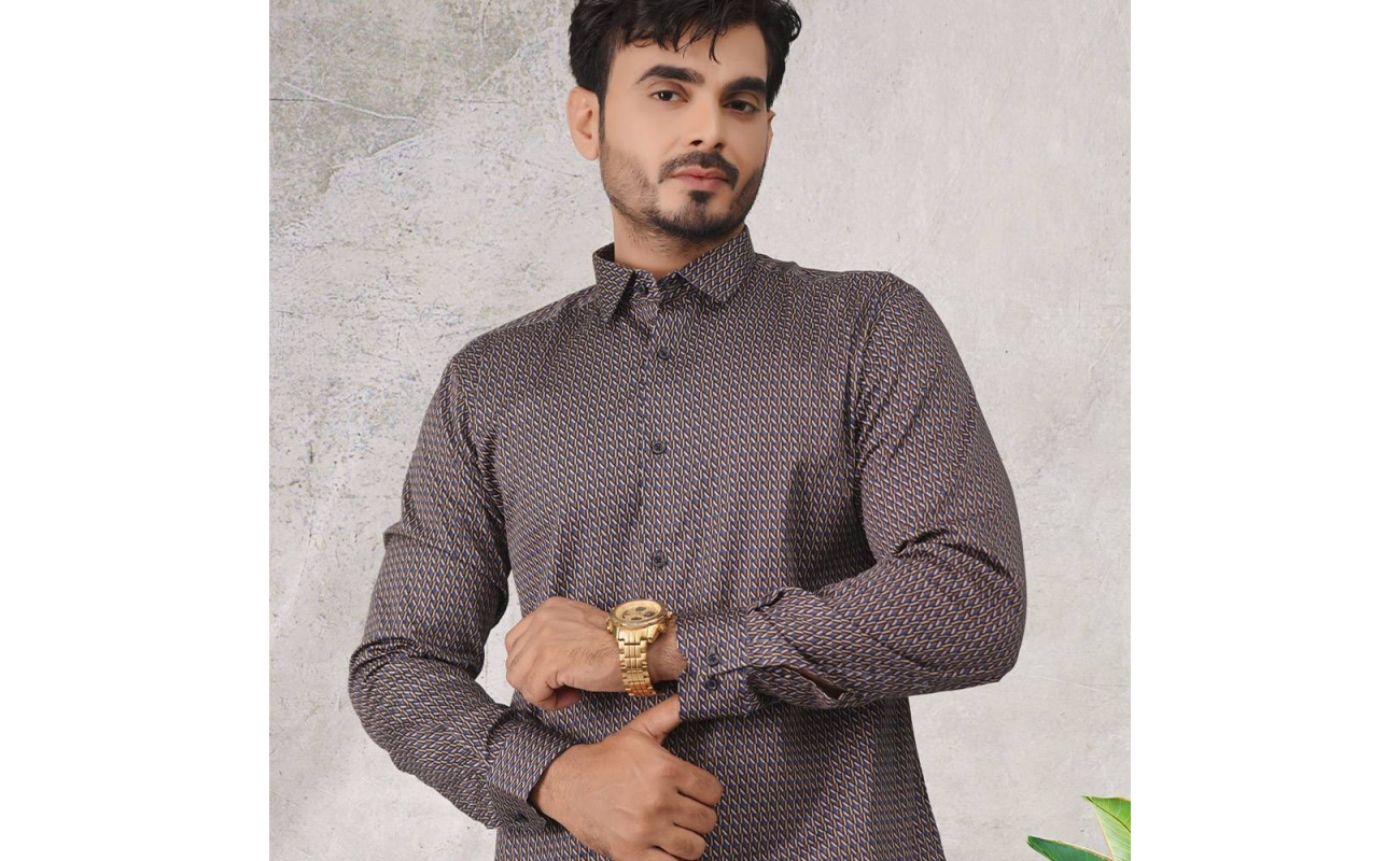 Brown Floral Black print Italian Series Men’s Casual Shirt CS 07