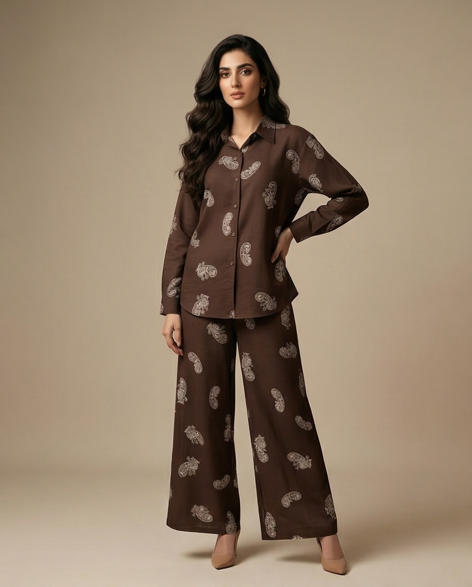 Espresso Paisley Irish Linen Co-ord Set