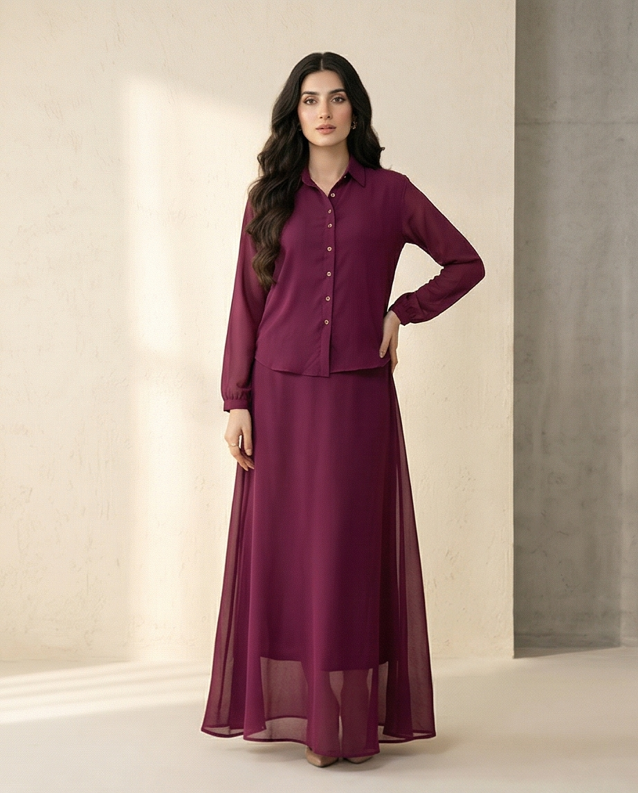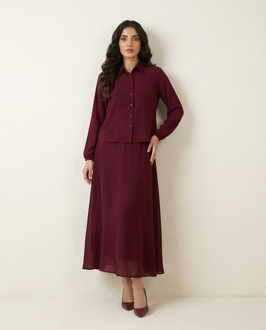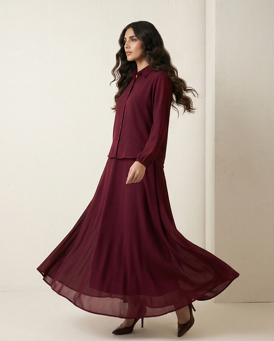 ​Introducing the Mulberry Georgette Maxi, a masterpiece of modern modesty and timeless grace. This isn’t just a dress; it’s a statement of refined taste. Designed for the woman who seeks a seamless transition from a high-stakes boardroom meeting to an intimate evening gala, this maxi dress offers a silhouette that is as powerful as it is feminine. The rich, deep wine hue—reminiscent of vintage mulberry—commands attention without ever needing to shout, making it a versatile cornerstone for any high-end wardrobe.