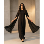 ​The true luxury of this garment lies in its shamoos silk construction. Shamoos silk is celebrated globally for its unique “satin-faced” finish, which provides a brilliant, liquid-like shine that catches every flicker of light. This fabric doesn’t just hang; it flows. Its substantial weight allows for a superior drape that skims the silhouette with a flattering, non-clingy grace. Against the skin, the silk feels cool, smooth, and incredibly indulgent, ensuring that your comfort is never sacrificed for your style. Its durability ensures that the rich black pigment remains intense and vibrant, even after multiple professional cleanings.