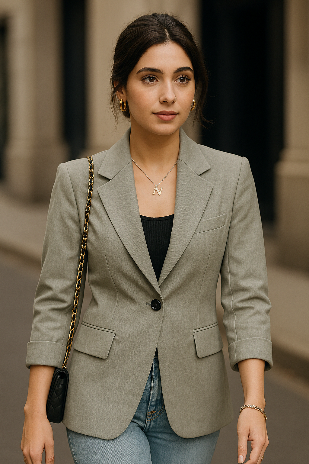 Discover the Olive Aura Blazer, a sophisticated women’s blazer designed to exude elegance, confidence, and modern charm. Its timeless olive tone and sleek tailoring make it a versatile wardrobe essential for professional and casual occasions alike.